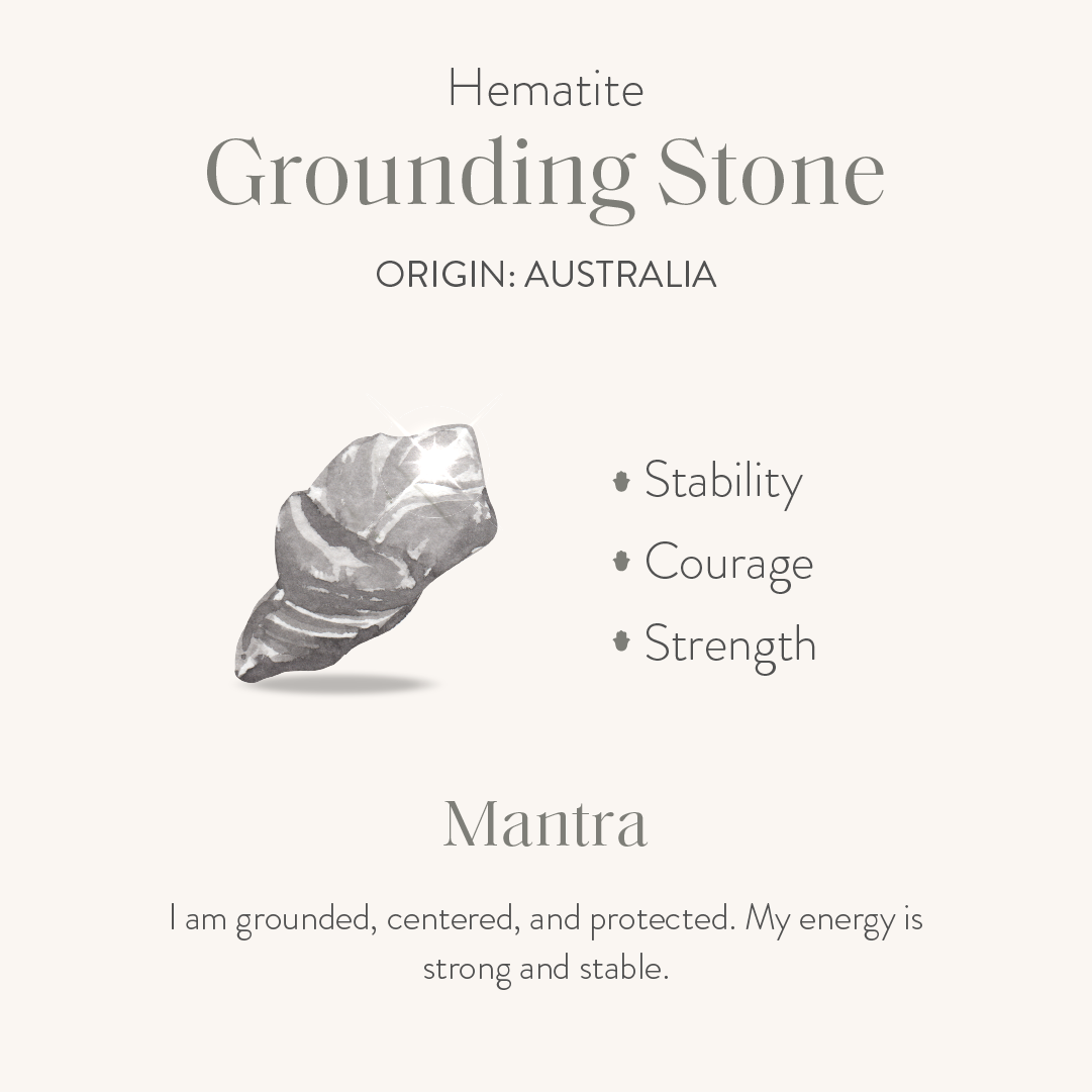 Stones: Hematite (calming, grounding, focus, centering)